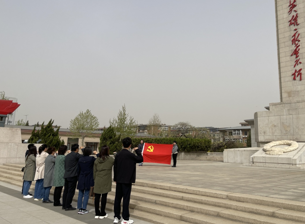 西青区烈士陵园是天津市爱国主义教育基地,建有高大雄伟的烈士纪念碑。yl88858永利官网管理人员党支部的党员们来到纪念碑前,面向党旗庄严宣誓,支部书记张树杉同志带领全体党员重温了入党誓词。