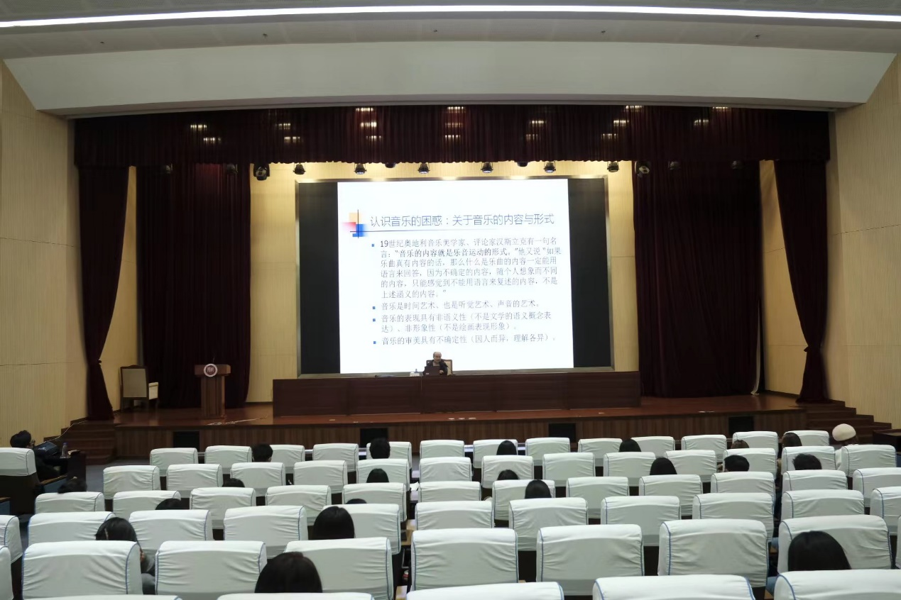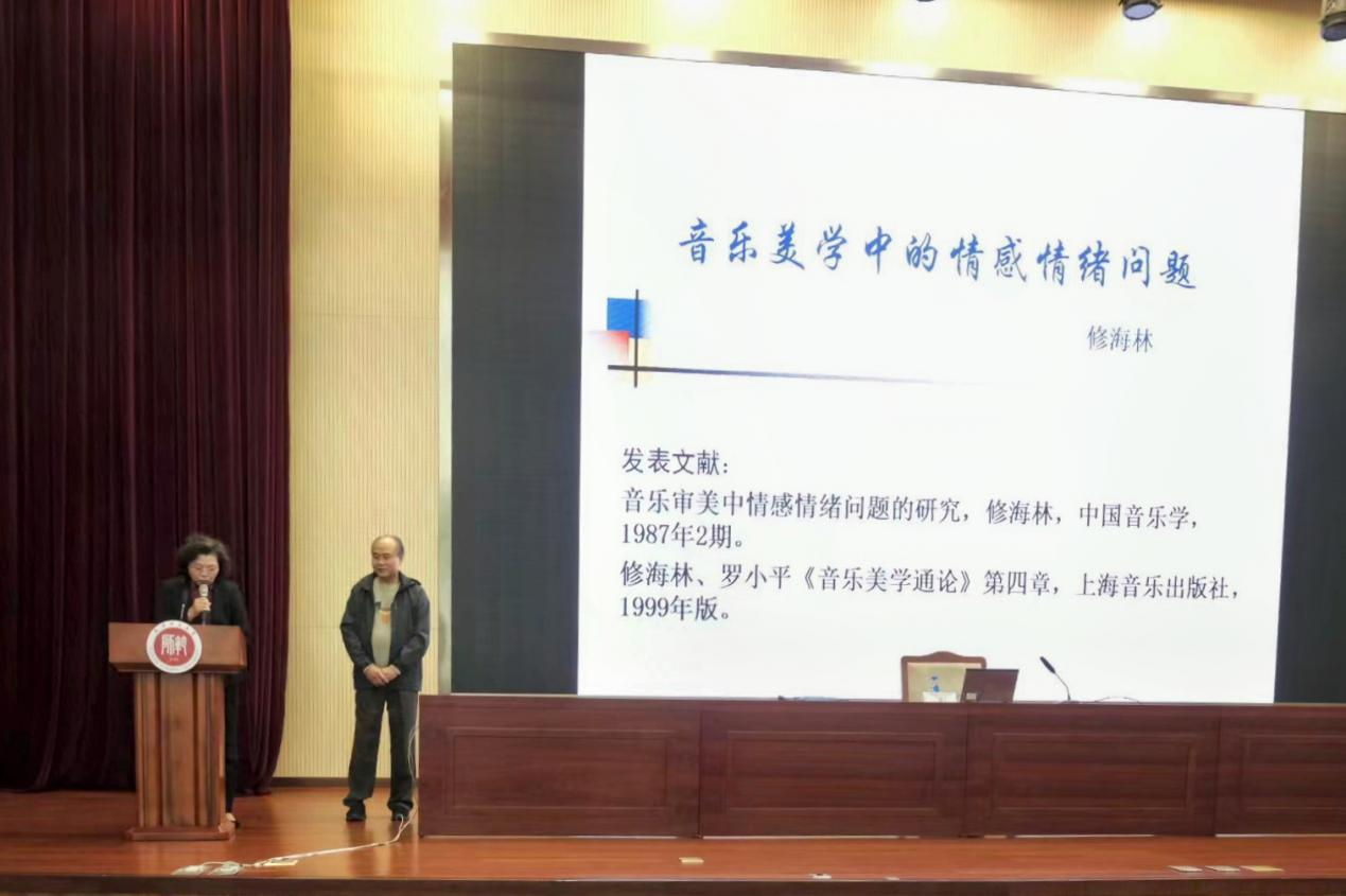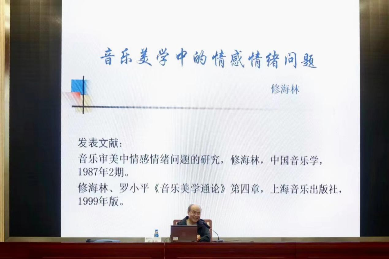 修海林教授以“音乐美学中的情感情绪问题”为主题,从音乐的内容和形式、音乐情感在人的心情结构中的心理学定位、什么是音乐等问题进行讲解,由点到面,由浅到深,让同学学有所获。