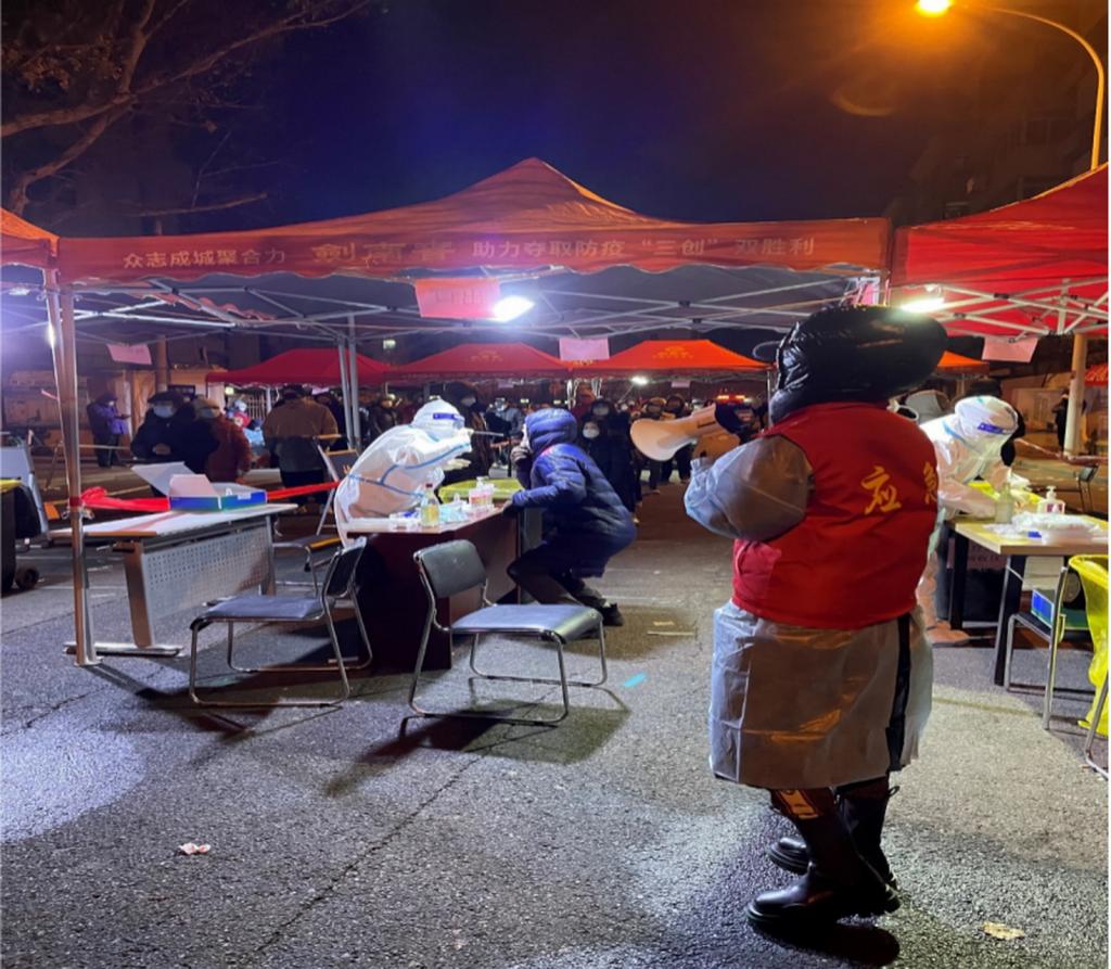 戏剧影视文学系教师李冬茵和我的交流多数是通过微信语音,我每次听到她的声音都觉得里面充满了阳光和力量。每当下沉干部工作微信群里开始接龙的时候,便意味着她已经到岗工作。此次李老师作为下沉干部报到后被分到了中北镇旭辉御府社区。她发来的现场照片不多,我之前也在朋友圈里转发过,李老师说看了欢喜,心里很是安慰,这种鼓励和赞扬是一种精神动力。她除了在大筛现场维持秩序、准备物资,还在居委会做一些日常工作。这几天她从来没提过自己有多累,倒是说了一句,“下沉到基层才知道基层工作真是不好做”。