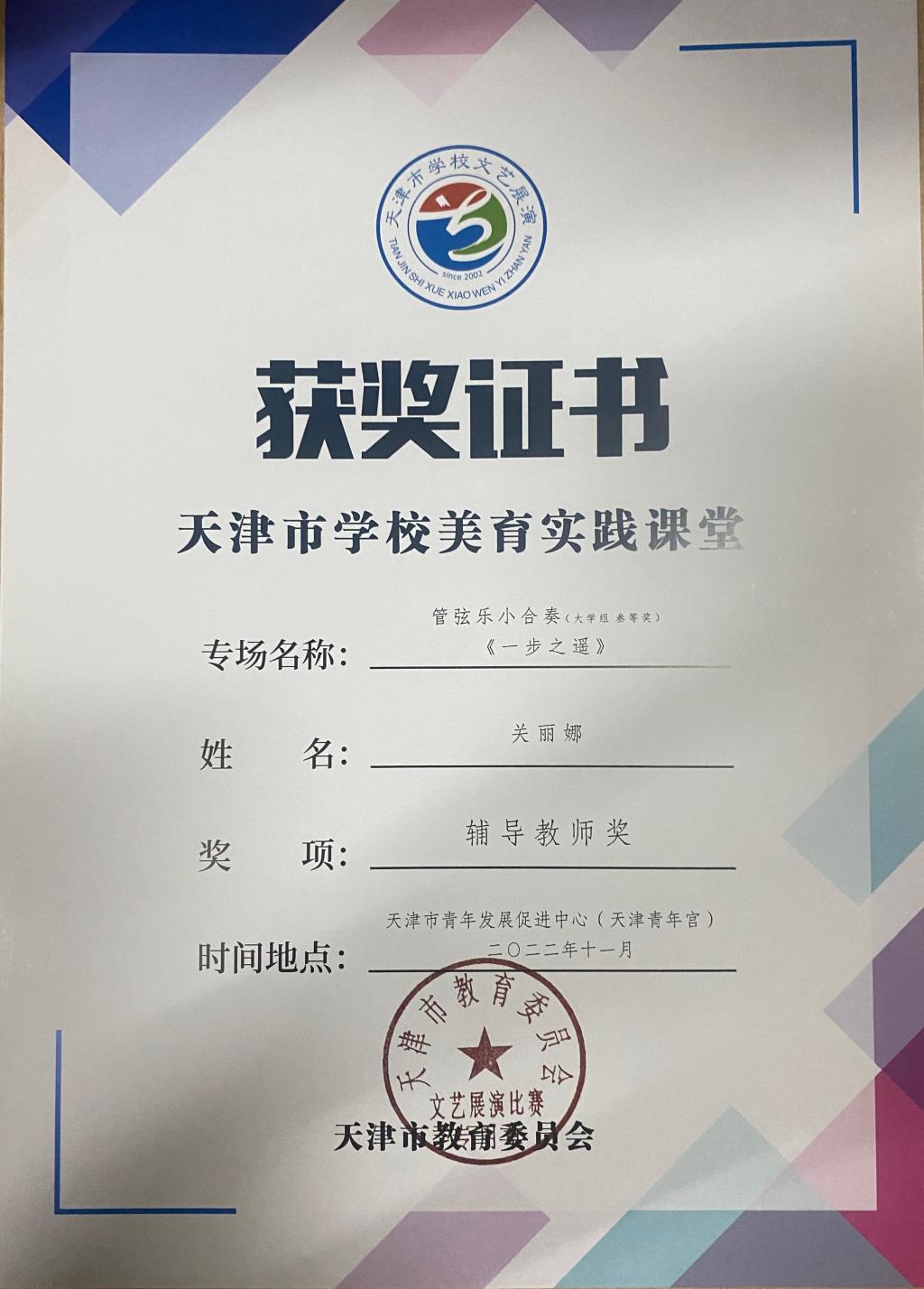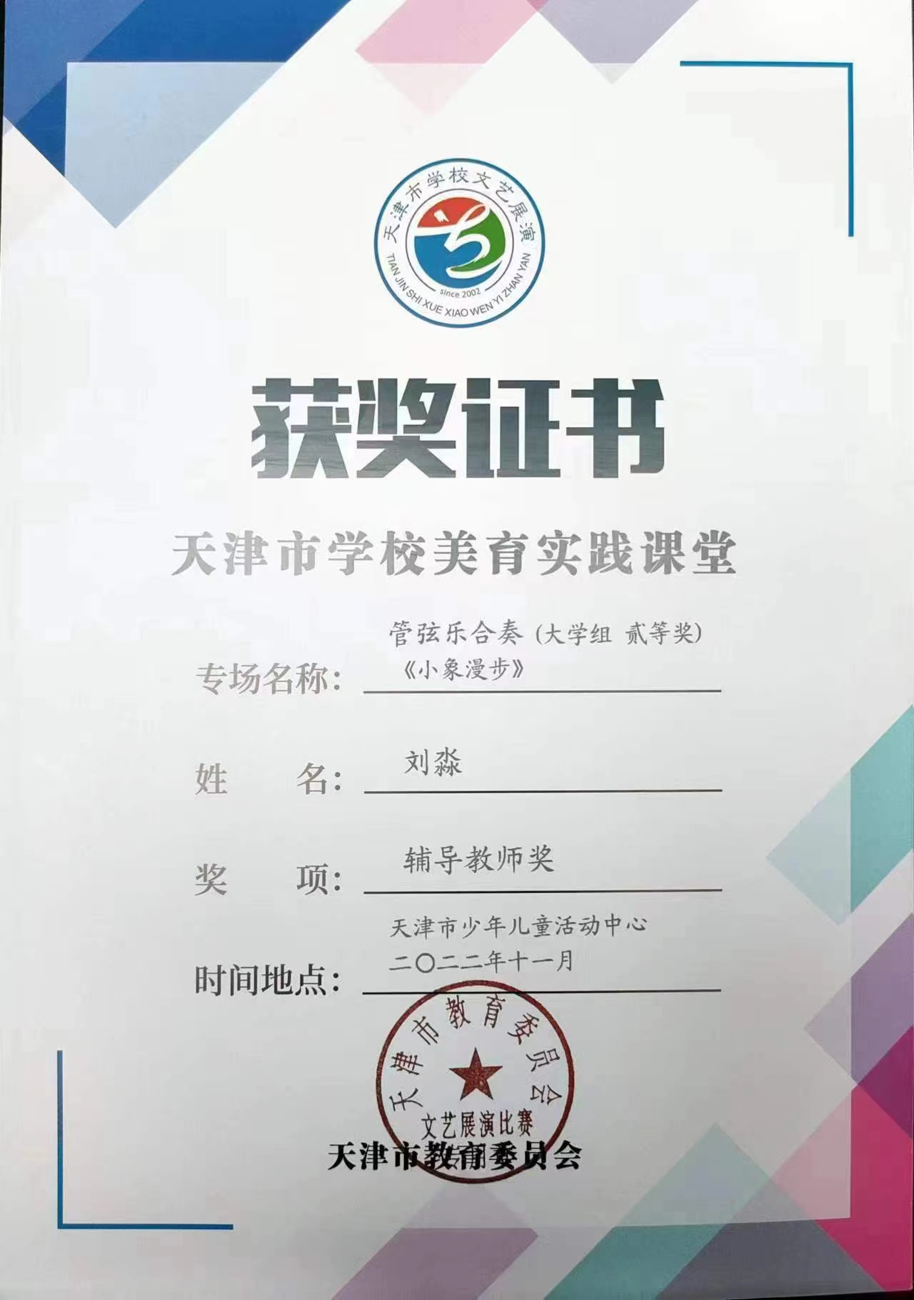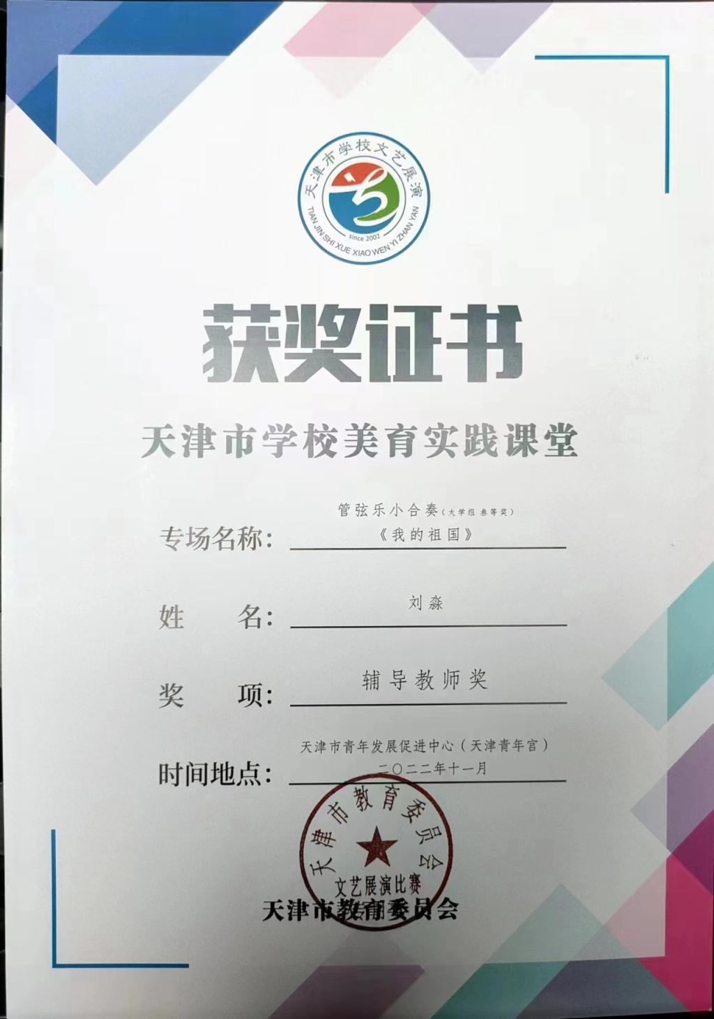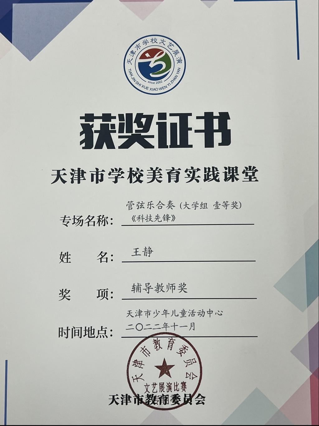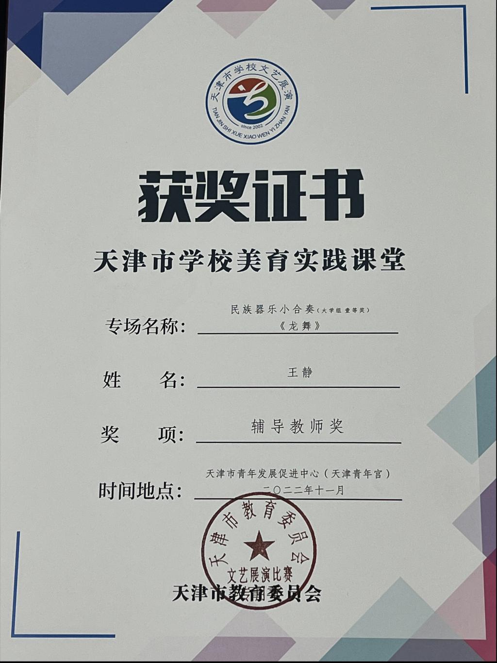 比赛中,同学们认真对待、积极准备,克服疫情时期的各种困难,抓紧一切在公司的时间,用最短的时间排练作品,尽情展现青春的风采,更是用艺术表演彰显校园文化底蕴,将美育实践的成果带到更广阔舞台。yl88858永利官网器乐系教师王静、刘淼、张坤、关丽娜获得辅导教师奖。
