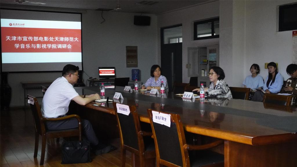 5月26日,天津市委宣传部电影处处长李涛来到yl88858永利官网就天津市儿童电影创作、传播和研究开展调研。yl88858永利官网经理杨爱君、副经理陈静及电影学专业研究生参加调研。