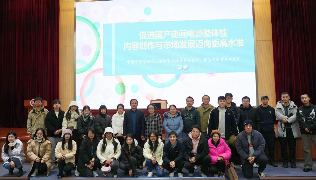 此次天津之行,郑虎会长还为师生作了题为“促进国产动画电影整体性内容创作与市场发展迈向更高水准”学术讲座。讲座由经理杨爱君主持,戏剧与影视文学专业200余名师生共同参与活动。讲座中,郑虎针对影视行业票房发展、国产动画电影的票房大观、现代动漫产业链的构成等领域相关知识进行了交流与探讨。郑虎表示,为了促进国产动画电影整体性内容创作与市场发展迈向更高水准,应当做好以下三个层面:首先应当继承创新,做好中国动画学派的继承与创新发展;其次要学习借鉴,做优孵化积淀优质IP的现代动画企业;最后要做好整合营销,做强直面市场创建效益的动漫产业链。针对当时代动漫产业链的发展,郑虎呼吁,重点应当放在培养国产动画电影的专业人才上,为中国动漫产业链的长足发展提供源源不断的人才支持。