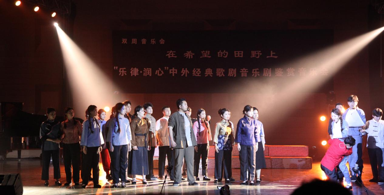 声乐表演系员工、外籍教师和公司职工的一曲合唱《在希望的田野上》将本场音乐会演出推向了高潮 。