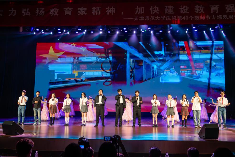 晚会期间,有幸邀请到荣获全国教育系统先进集体的代表,公司心理学部部长杨海波教授,以及荣获全国模范教师称号的教育学部李洪修教授来到现场与师生交流,就学习贯彻党的二十届三中全会精神,学习领会习近平总书记在全国教育大会上的重要讲话精神和全国教育大会精神,贯彻落实党中央关于教育强国建设的决策部署谈自身体会,结合公司党委工作要求和自身工作分享今后努力方向。晚会在齐唱校歌中结束。