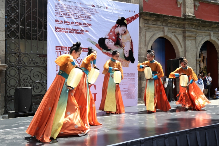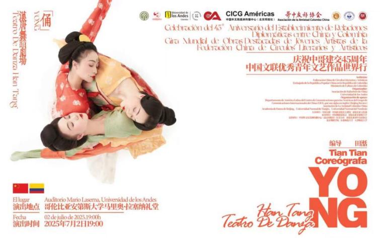 本次活动由舞蹈系王蒋悦梦老师带队,卢艺、王雨宁、王悦边、彭雅菲四名同学参演,先后在哥伦比亚安第斯大学马里奥·拉塞纳礼堂和墨西哥国立世界文化博物馆表演了《三彩闹千灯》《蹲蹲舞我》《唐乐宫图》《穿深衣的贵族》《相迎》五个节目。师生们还与安第斯大学艺术系、墨西哥民俗舞蹈公司的师生开展工作坊交流,围绕汉唐乐舞的复原研究、传统舞蹈的现代表达等议题深入探讨,进一步推动了中外舞蹈艺术的互学互鉴。